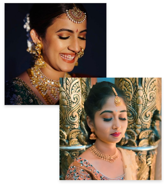 If you opt for bridal makeup for 2 sessions, you will receive 1 matured makeup session free of charge.
